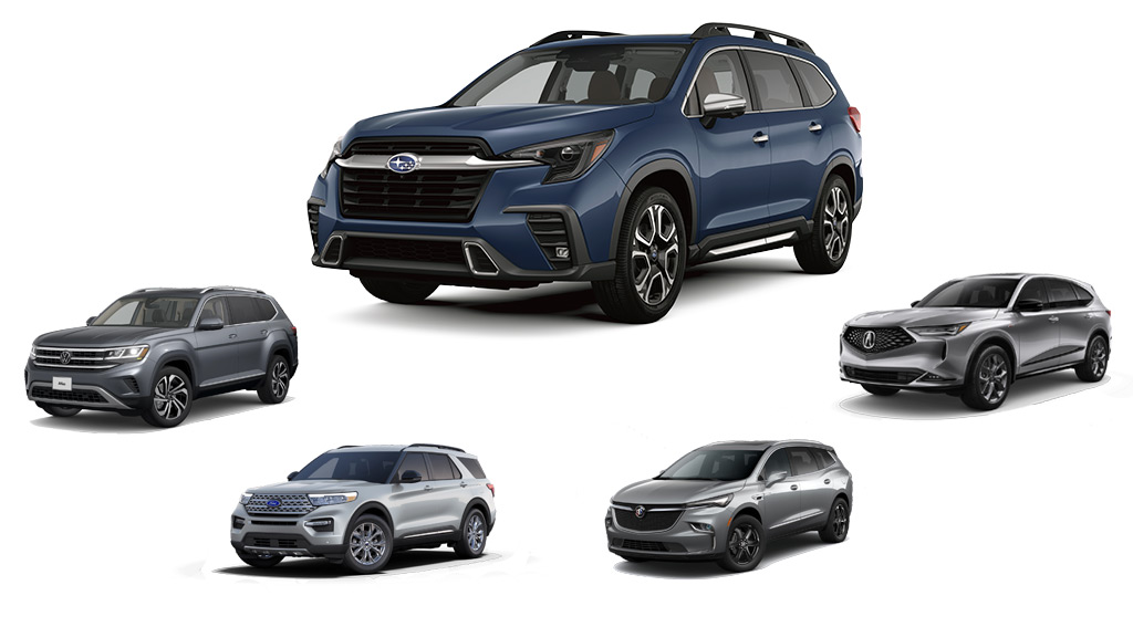 We're comparing our 2023 Ascent Premier against the 2022 Ford Explorer Limited (as the 2023 model hasn't been released at time of publishing), the 2023 Volkswagen Atlas Highline, the 2023 Buick Enclave Essence, and the 2023 Acura MDX A-Spec. We've done our best to have matching features in each of these vehicles, and you'll find that the family friendly 2023 Ascent Premier features some amazing technology and options that stand up extremely well to the other brand's offerings while being very competitive on pricing.